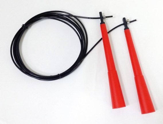 Szybka skakanka marki Spartan z możliwością regulacji długości linki. Lina została wykonana ze stali i pokryta tworzywem sztucznym.